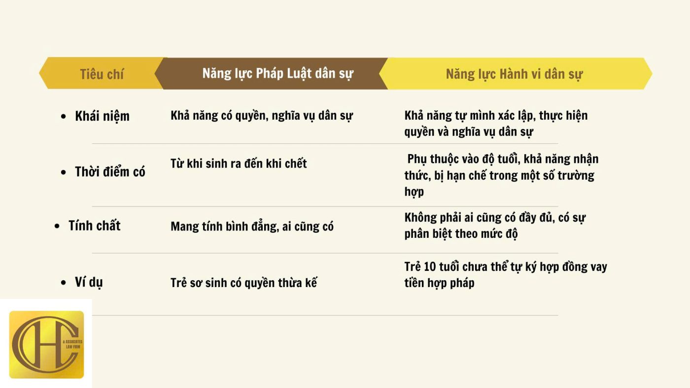 III. PHÂN BIỆT NĂNG LỰC PHÁP LUẬT DÂN SỰ VÀ NĂNG LỰC HÀNH VI DÂN SỰ